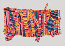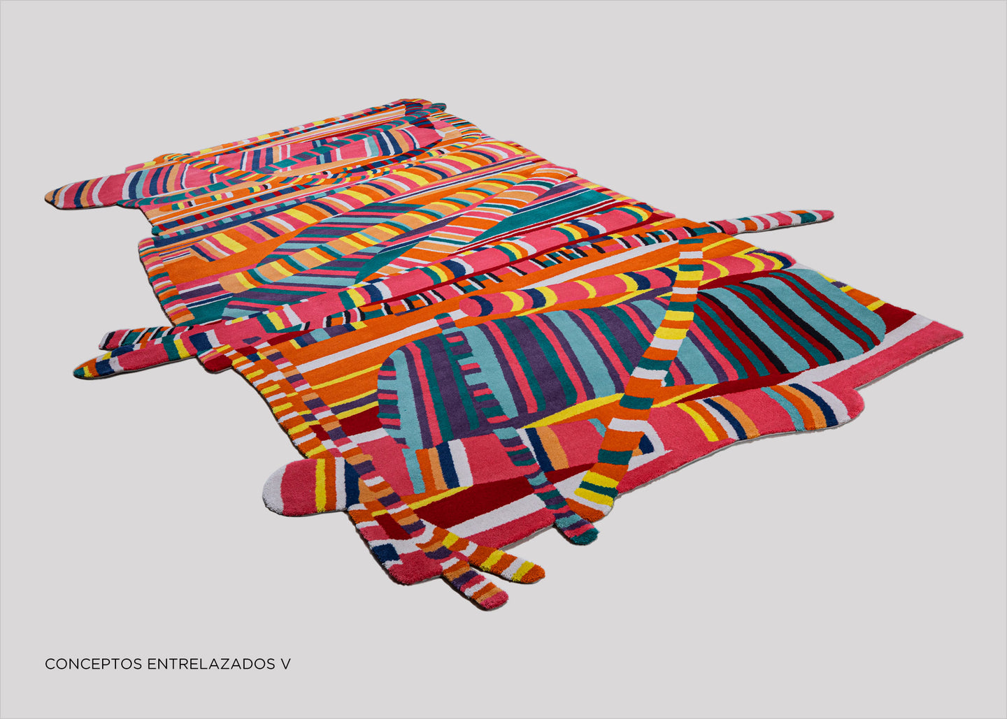 Intertwined Concepts V belongs to a series of original textile artworks created by Marta Minujín in collaboration with El Espartano Editor. Blending tradition and innovation, the collection is the result of a fusion between Minujín’s contemporary energy and El Espartano’s technical expertise.