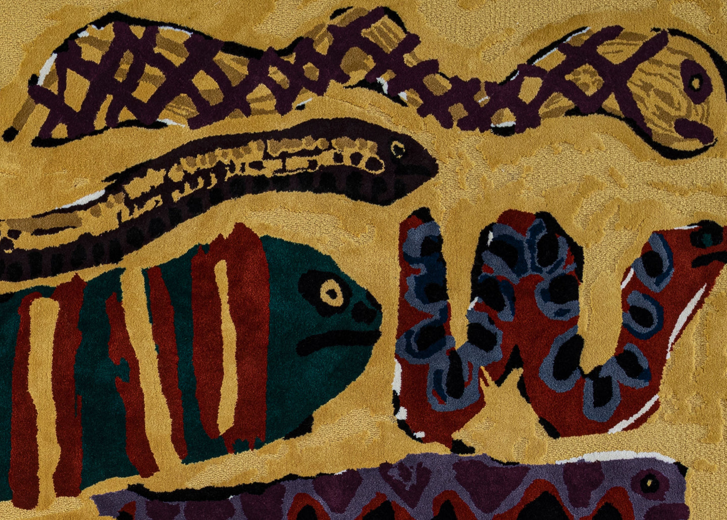 The Slithering Snakes rug belongs to the “Instinct” collection, showcased during Milan Design Week 2025 at the prestigious Rossana Orlandi gallery.